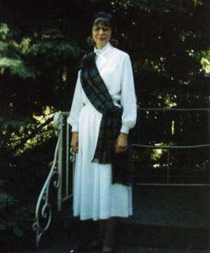 Iowa farm girl. Danish, Scots, & English ancestry. Second of five children. Reader. Dreamer among trees & flowers. Dancer down lanes & in fields. High school basketball-player. Artist. Calligrapher. Wife. Mother. Girl Scout leader. Ballet mom. Dance costume seamstress. Little League mom. Community theatre make-up artist. University administrative assistant. Traveler. Progressive political activist. Anti-war demonstrator. Staunch member of the Women's International League for Peace & Freedom. Folk music & protest song enthusiast. New York Yankees devotee. Knitter. Cat-lover. Ace Scottish country-dancer. Witch. Ritualist. Pianist. Soprano recorder-player. Goddessy alto. Heart-stopping big blue eyes. Dubbed by granddaughter Andred "the Danish Ava Gardner". Descendant of Robert the Bruce (King Robert I of Scotland) via descent from President James Monroe. An incomparable woman of insight, forthrightness, backbone, & absolute integrity. Admired & respected by all who knew her, not least by her loving daughter.